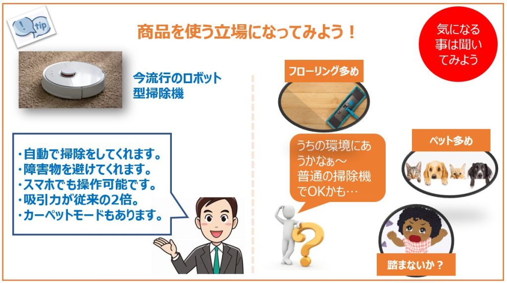 売る側は使う側の気持ちを完璧に理解していないので感じたことを質問してみよう!