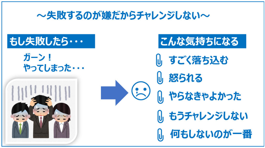 そして失敗するとチャレンジしなければ良かった!もうやらないと言う心理になります。