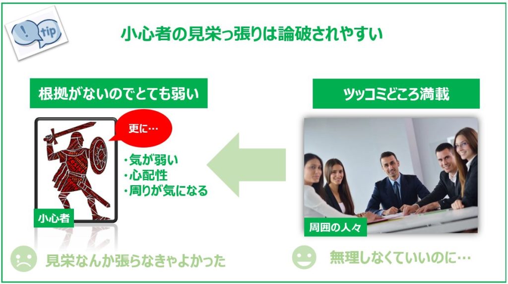 小心者がいくら見栄を張っても見破られてデメリットばかり!